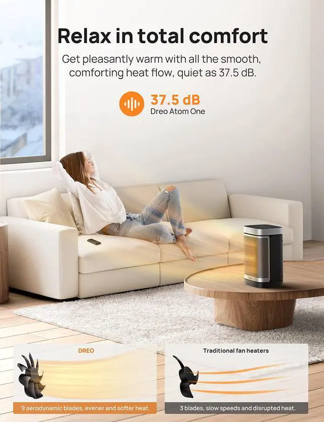 Weighed in only 4.4 pounds, Dreo Atom One comes with a hidden handle so you can carry around to wherever needed