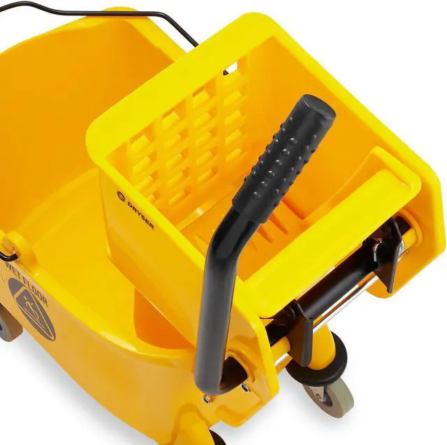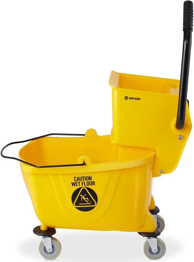 Clean floors quicker and prevent spills along the way with a feature-rich, cost-effective mopping solution. We designed the Dryser Commercial Mop Bucket with Side Press Wringer to be the most efficient, long-lasting mopping solution available. Featuring a high-efficiency wringer, splash-resistant bucket, distinctive CAUTION sign, and quiet, non-marking casters, this is an ideal cleaning tool for any residential, commercial, or industrial environment. Match cleaning efficiency, durability, and ergonomic design. Generic, inferior mop buckets with wheels can be awkward to maneuver and often result in annoying, hazardous spillovers.