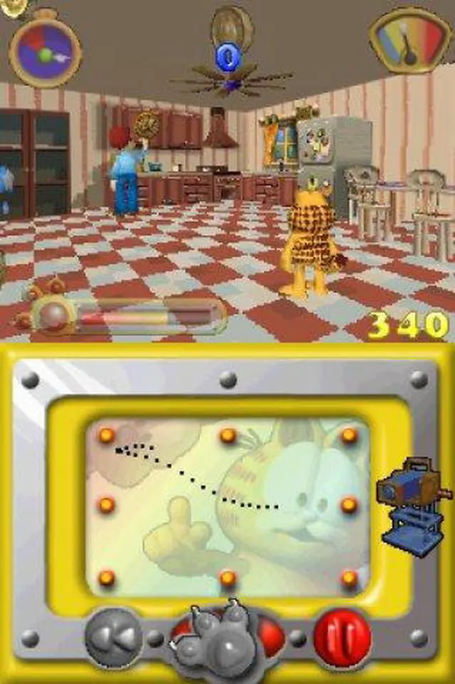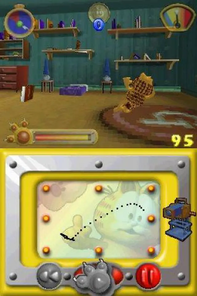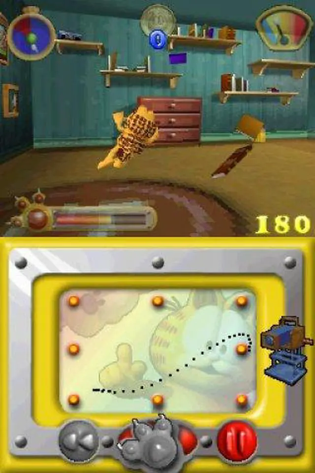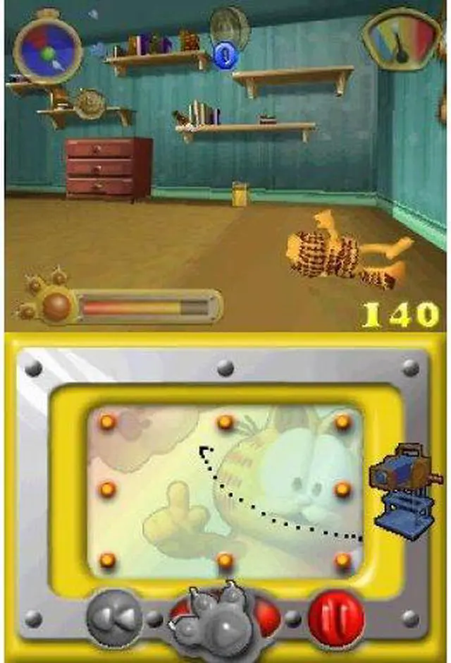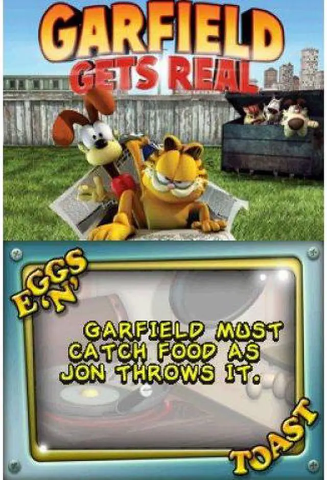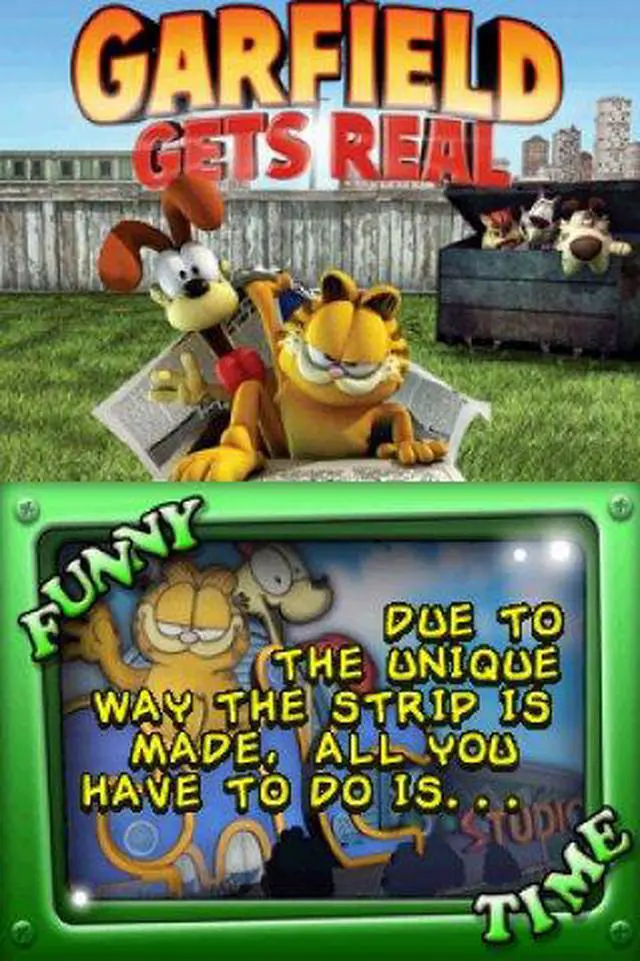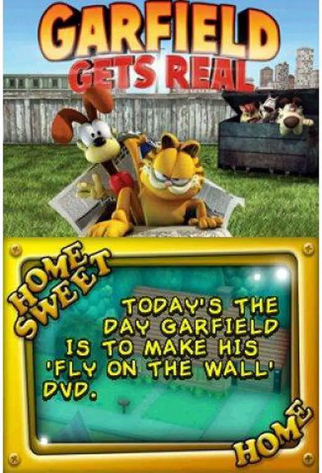 | Features | Based on the upcoming Garfield Gets Real DVD, this awesome new game puts you in the director's seat. It's your job to make the movie a hit and as funny as possible! Use Garfield's special moves, dances, tricks or props, coupled with lighting, camera, and sound effects to provide the audience with the most laughs. Will you make a "B" movie? Afeature? A Director's Cut, or a Special Edition? It's all up to you. Control Garfield in order to make your "Garfield Gets Real" movie as 7 Game Levels separated by cut scenes from the movie! 3D environment based on locations seen in the movie! All levels controlled by Nintendo DS stylus Fully modeled 3D polygon environments Multiplayer on Nintendo DS |