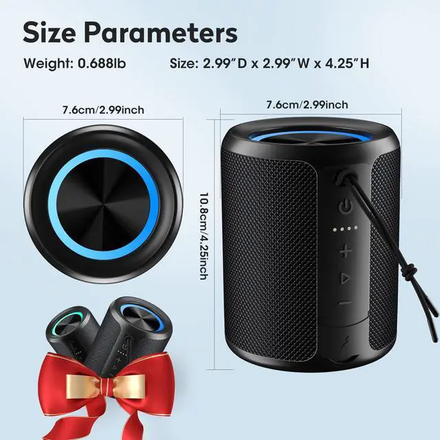 BT5.3 & TWS Pairing For Stable ConnectionThis Bluetooth Speakers Wireless Has Bt5.3 For Fast, Anti-Interference Links, Plus Tws To Pair 2 For Immersive Stereo Sound. Great For Home Parties Or OutdoorsIdeal Festival Stocking Stuffer For Music Lovers.