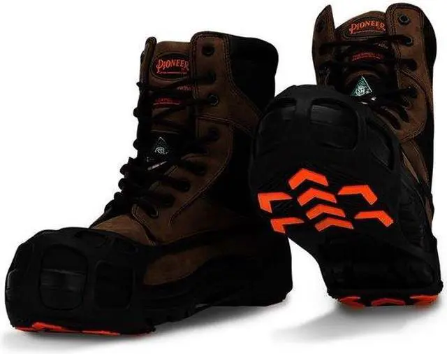 Traction Device, Footwear Coverage Style Heel, Upper Material Rubber, Traction Type Stud, 3-1/2 in L x 9 in W x 3-1/2 in H, Traction Material Tungsten Carbide, Traction Attachment Style Pull-On, Fits Shoe Size Men's 10-1/2 to 13 / Women's 11-1/2 to 13, Black, Unisex, For Use on Surface Types Ice, Snow, Outdoor, 1 Pair. This item has been restricted from sale in the following state (s): []