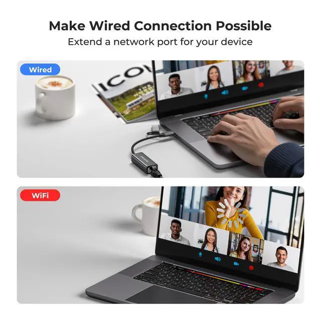 Plug-and-Play & Compact Portability: This usbc to ethernet adapter works seamlessly with Windows 11/10/8, Mac OS, Chrome OS, and Androidno additional drivers required. Compatible with IEEE 802.3, 802.3u, 802.3ab, crossover detection, auto-correction, and IPv4/IPv6/TCP/UDP protocols. Features a brand-new compact design. Easily carry it anywhere in your briefcase or pocketperfect for business professionals
