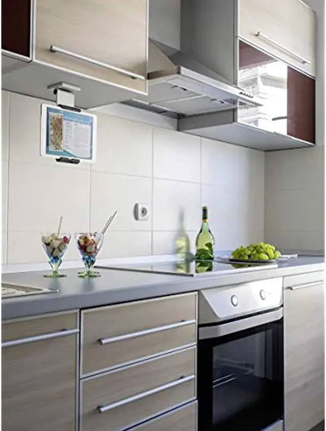 The elegant tablet holder for wall, cabinet, or table This attractive wall/cabinet tablet holder with swing arm can be used for numerous multi-functional areas of application, such as multiple workplaces and interactive information points, and offers a high degree of flexibility. The secure wall mount provides stability, for heavy use in the kitchen, warehouse, school or trades show. Special flexibility is provided by the 360??° rotatable tablet module and the variable angle adjustment of the tablet holder from 0-88°. The elegant tablet holder for wall, cabinet, or table This attractive wall/cabinet tablet holder with swing arm can be used for numerous multi-functional areas of application, such as multiple workplaces and interactive information points, and offers a high degree of flexibility.
