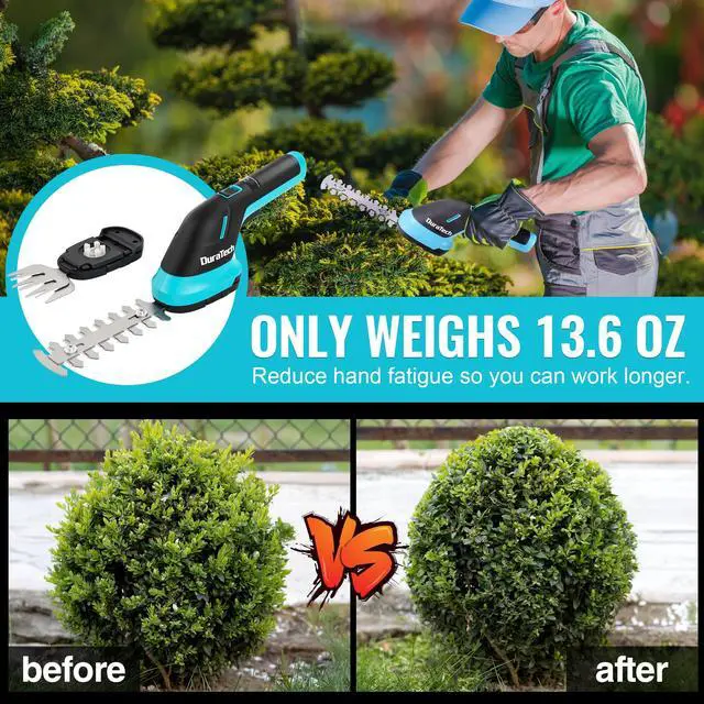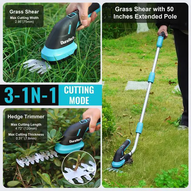 3-in-1 Versatile Trimmer: Easily switch between grass shear and shrub trimmer with the quick-change blade systemno tools needed. Includes an 8" shrub blade (for branches under 5/16") and a 4" grass blade (for weeds under 4.72"), perfect for everyday garden trimming