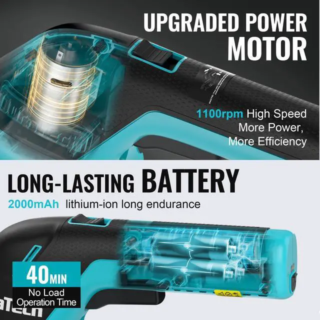 Type-C Charging & Long Runtime: Powered by a 2000mAh lithium battery with a high-efficiency 3.6V motor. Offers up to 50 minutes of use on a full 3.5-hour charge. Convenient USB-C charging via phone charger, car, laptop, or power bank