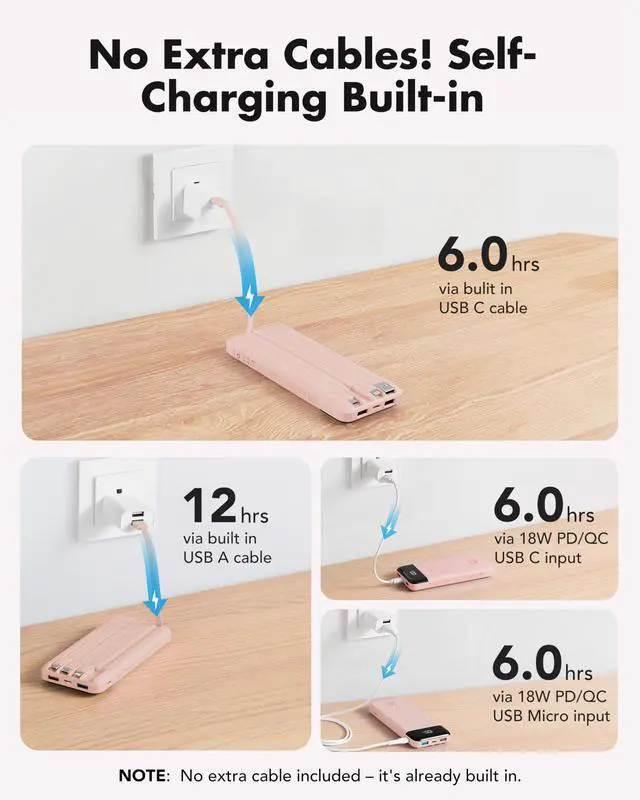 | Fetures | Portable Charger with Built in cables, multiports for multi devices charging |