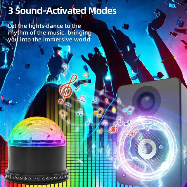 Sound-Activated Mode & Remote Control: The disco ball strobe light offers 3 sound-activated modes, 7 RGB color modes, strobe mode, and auto mode. Easily switch modes and adjust rotation speed via the remote control to customize lighting effects and instantly elevate your party atmosphere
