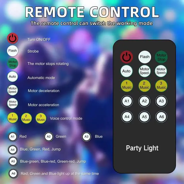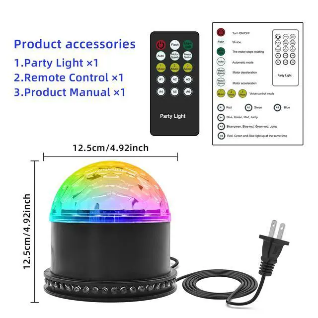 Package Contents: 1 Disco Ball Light, 1 Remote Control, 1 User Guide