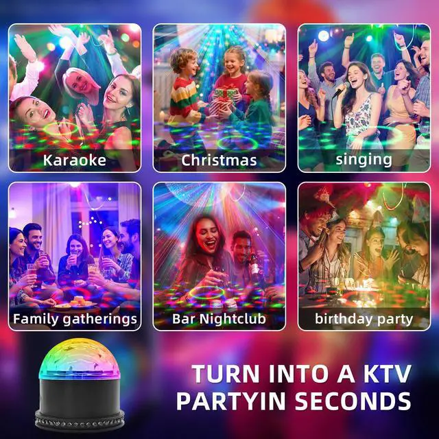Plug-and-Play: Compact design for easy portability and instant setup. Place it on tables/floors, in cars/tents, mount it on ceilings/walls via the bottom mounting holes, or hold it to sway with the dance moves