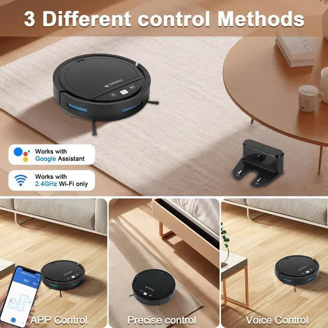 [Smart App & Voice Control] Program custom schedules and control cleaning paths via Tuya app (2.4GHz WiFi required). Works with Google Assistant for voice commands like "Start cleaning the living room".