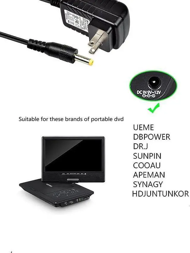 Length: 150 CM (Approximately 5 ft) Compatible with most of brands portable DVD players (Compatible with UEME/DBPOWER/DRJ/SYNAGY/SYLVANIA/THZY/WONNIE portable