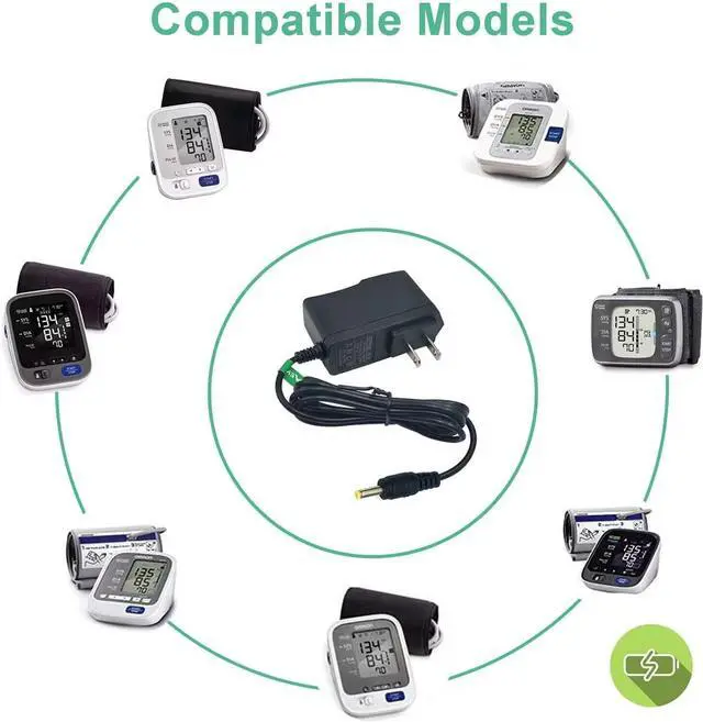 Compatibility: Replacement adapter fit for Omron Healthcare Upper Arm Blood Pressure Monitor 5 7 10 Series - Power Supply Charge Cord Replacement for HEM-ADPTW5 (Output DC 6V 1A)