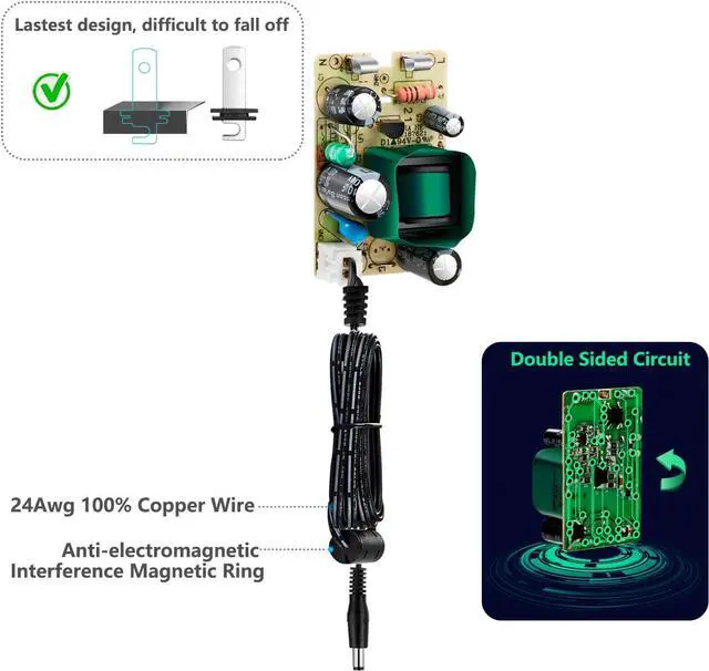 : Input 100~240v 50/60hz with output dc12v 0.5 amp; adaptor self-adapting barrel jack size: 5.5 mm x 2.1 mm (applicable 2.5 mm) positive (+) centerCertifications: Our 6ft charger cord have over 20 product certifications including UL-Listed FCC (US) CE (Europe) GS (Germany) TüV (Germany) PSE (Japan) CCC (China) EAC (Russia) BSMI (Taiwan) and others ensuring safety and reliabilityHigh
