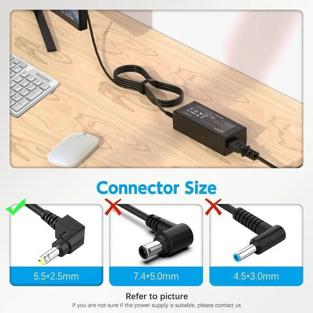 WARNING: This charger does NOT fit monitors requiring 12V power or the smaller 4.0 mm tip (found on some newer slim models). Please check the back of your monitor for 19V before buyingFits US Best-Selling ModelsPerfectly compatible with the most popular monitors in the
