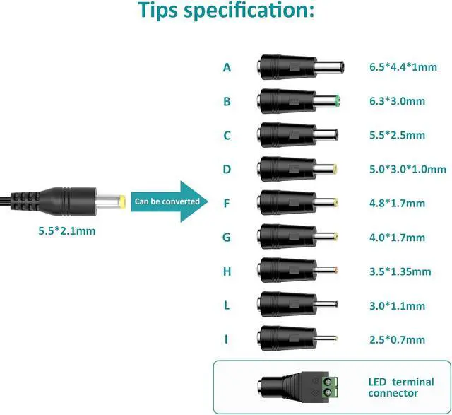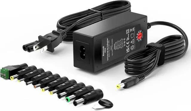?????????????????????????????????????????? -- It is a perfect backup ac power adapter with 7 DC voltages including DC 5Volt 6Volt 7.5V olt 9Volt 12Volt 13.5V olt 15Volt. You can easily convert to different voltages by using the provided keys which can provide power for 98.5 % of household electronics?????????????????????????????????????????? -- Come with 11 selectable DC plugs including Micro USB plug compatible with 5-15V household electronic devices such as routers speakers LED strip lights Christmas village decoration and more?????? -???? -???????????????????? -- This power adapter is a perfect emergency standby replacement AC adapter.