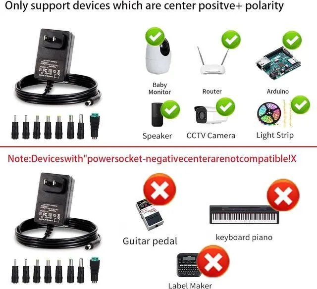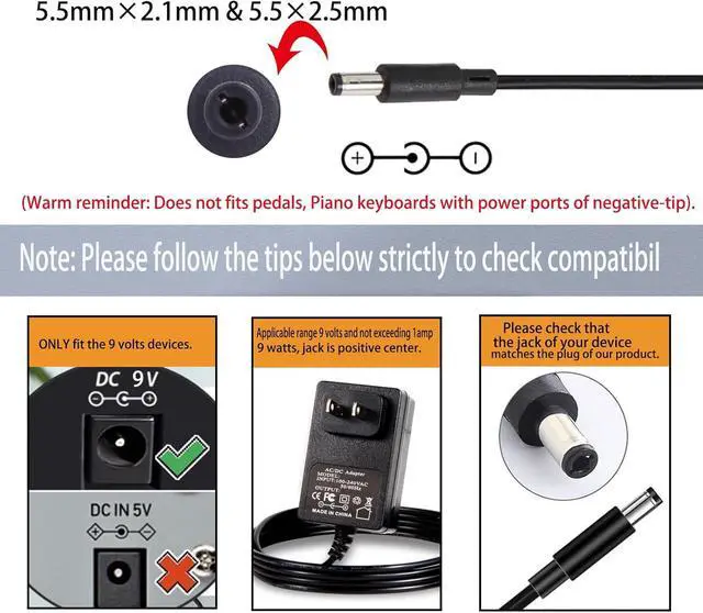 (Warm reminder: Does not fits pedals Piano keyboards with power ports of negative-tip). Multi adapter tips offer more selections for powering your 9V electronics!
