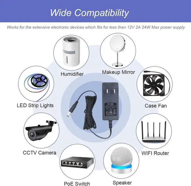 Built-in Safety Protections: this 12v 2a power adapter designed with overload over-voltage and short-circuit protection this power adapter ensures the safety of your devices and prevents damage from power surges.