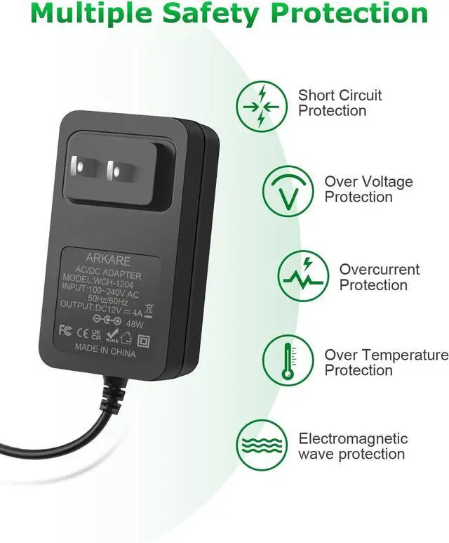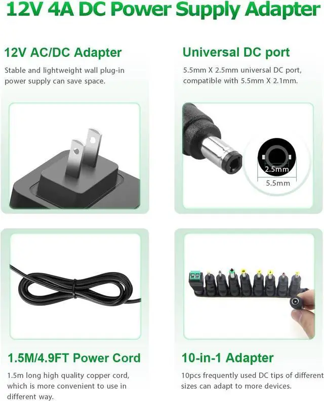 Package includes: 1 x 12V 4A ac/dc adapter 8 x DC Tips. Built-in multiple safety protection systems and safe to use. If you have any questions about the product please do not hesitate to consult us before returning. We always support and provide excellent after-sales support!