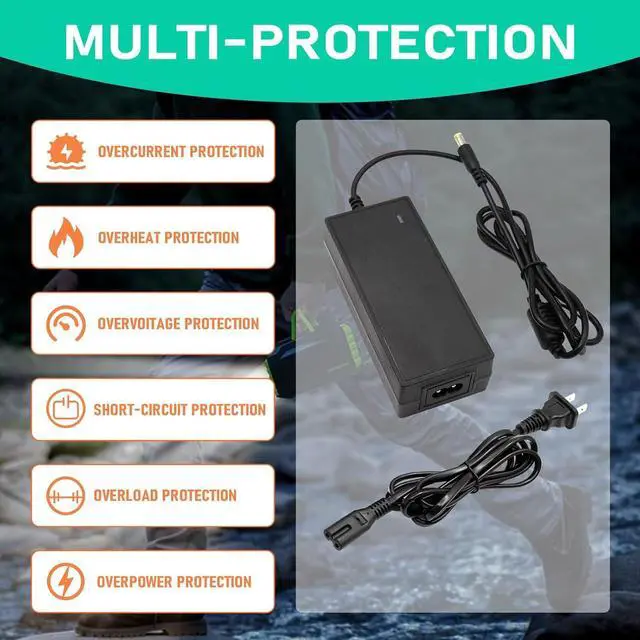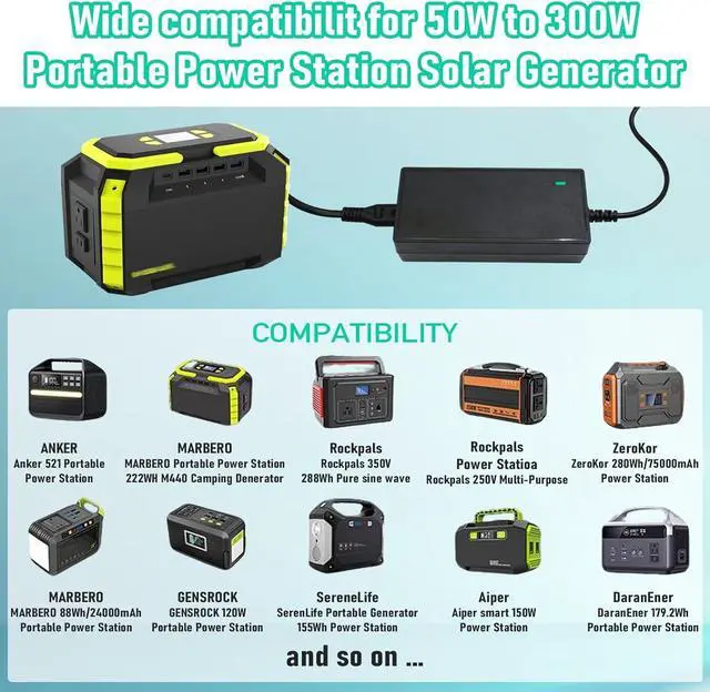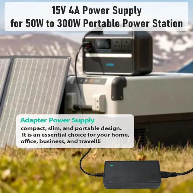 Output: 15V Max 60W. Build-in LED Indicator light to indicates whether it's working and also easy to find the location in the darkCompatibility: for Powerhouse 200 for Rockpals WCE001 K53 288Wh 350W 240Wh RP250W /for SinKeu/for FlashFish 50w 300W Portable Power Station Solar Generator Power Supply Cord Charger PSU