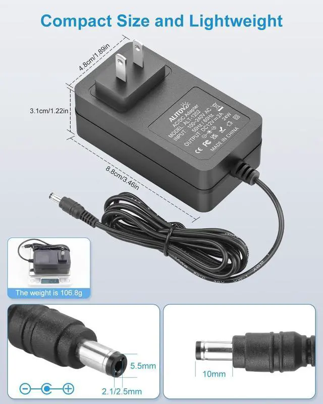 Widely used: 12V 2A power adapter would meet your 90% power need for 12V household and office electronics like electrical toys LED strip lights DVD Player GPS DVR webcam speaker CCTV camera USB Hubs external speaker PC monitor mini fan Router hard disk driver and more 12V devices.
