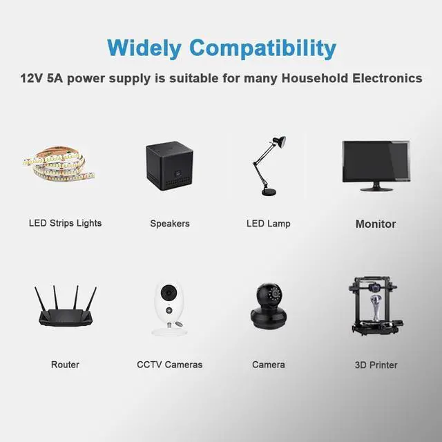 Wide Application: Perfect for 5050 3528 12V Led Strip Light CCTV Security System Wireless Router ADSL Cats Hub Security Cameras Audio/ Video Power Supply 3D Printer Led Driver Webcam Router. The 8 included tips ensure you find the right fit for your electronic device. Not Universal Laptop Charger Computer