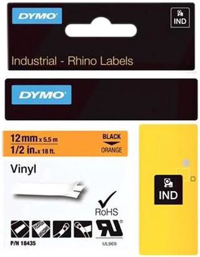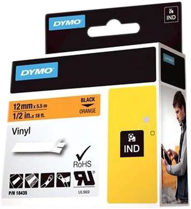 DYMO 18435 1/2" Vinyl tapes for Industrial Purposes- Orange, 18'