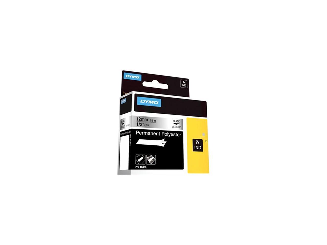 Dymo 18486 Industrial Strength Permanent Polyester Labels 1/2" x 18 ft - Black on Metallic