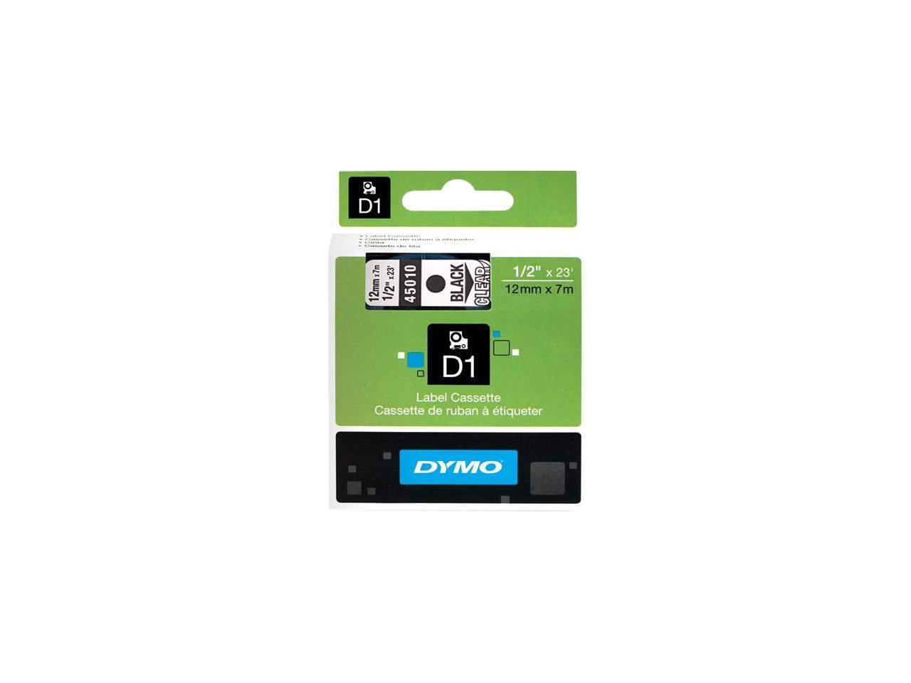 Dymo 45010 Black on Clear D1 Label Tape 0.50" Width x 23 ft Length - 1 Each - Rectangle - Polyester - Thermal Transfer - Clear