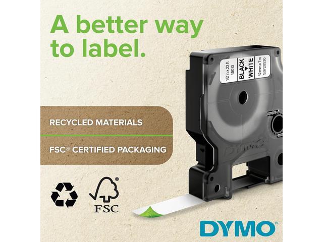 • INCLUDES: One 1/2 inch (12mm) x 23 ft (7mm) D1 label cassette, black print on white tape