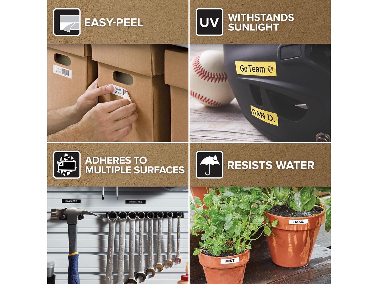 • STICKS TO A VARIETY OF SURFACES: Adheres to most clean, flat surfaces including plastic, paper, metal, wood and glass; D1 standard labels are reliable, afforable and perfect for indoor or outdoor use