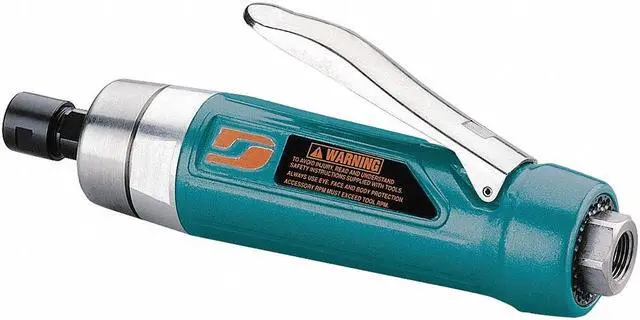 Air Die Grinder, Straight, Free Speed 15, 000 RPM, HP 1.0 hp, Collet 1/4 in, Exhaust Rear, Variable Speed No, Grinder Type Straight, CFM @ Full Load 39.0, Average CFM @ 15 Second Run Time 9.75, Handle Material Composite, Min. Hose Size 3/8 in, Overall Length 10 in, Required Pressure 90 psi, Air Inlet 1/4 in NPT, Bearing Type Ball, Throttle Lever, Characteristics Anti Clog Exhaust Baffling, Gearless, Lightweight. This item has been restricted from sale in the following state (s): []