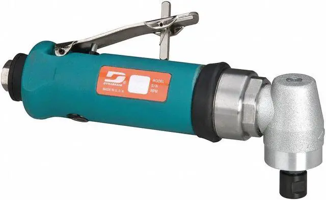Air Die Grinder, Angle, Free Speed 18, 000 RPM, HP 0.7 hp, Collet 1/4 in, Exhaust Rear, Variable Speed No, Grinder Type Right Angle, CFM @ Full Load 41.0, Average CFM @ 15 Second Run Time 10.25, Handle Material Composite, Min. Hose Size 1/4 in, Overall Length 7 7/8 in, Right Angle Length 2 29/32 in, Required Pressure 90 psi, Air Inlet 1/4 in NPT, Bearing Type Ball, Throttle Lever, Characteristics Gearless, Lightweight. This item has been restricted from sale in the following state (s): []