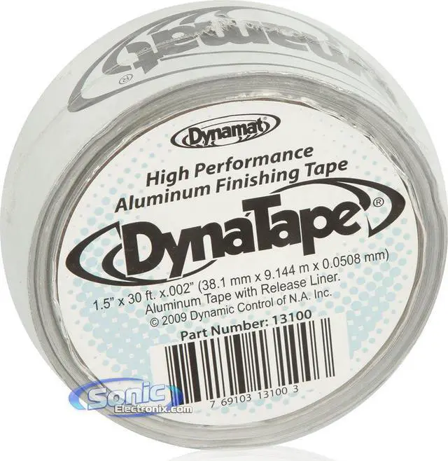 One Roll 1.5 Wide x 30' Long (38mm x 9.1M ). 002 Thick Solid Aluminum Finishing Tape. Designed for Use Along the Seams of Dynamat to Contain the Butyl Core. Aluminum Layer is Printed with the Dynamat Logo. Gives a Finished and Professional Appearance. Transparent Pressure Sensitive Adhesive