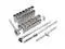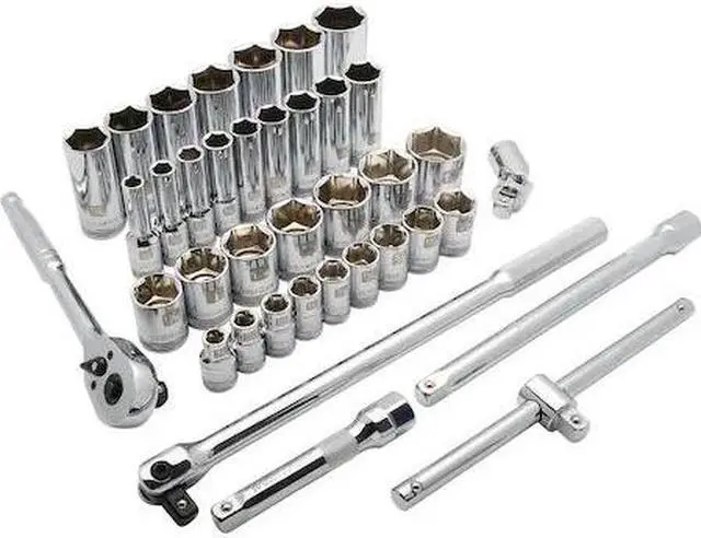Deep SAE Sockets: 3/8", 7/16", 1/2", 9/16", 5/8", 11/16", 3/4", 13/16", 7/8", 15/16", 1", 1-1/16", 1-1/8", 1-3/16", 1-1/4", 1-5/16", 5" & 10" Extensions, 45 Tooth Ratchet, Universal Joint, Flex Handle, T-handle.