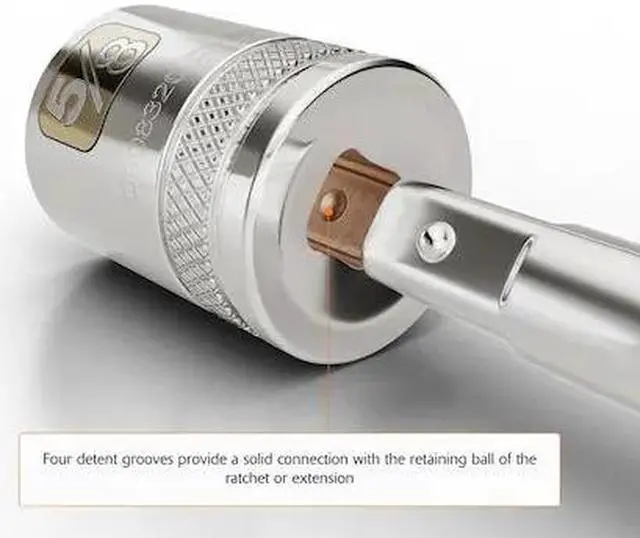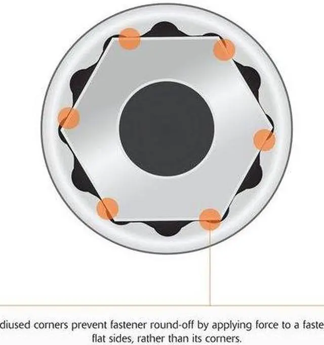 Drive Type: 12 Point. 1/2" Drive. Chrome finish for maximum resistance against corrosion. Large laser etched markings improve size identification and provide differentiation between SAE and metric sizes. Knurled ring provides superior grip for quicker and easier removal of socket from ratchets and attachments. Brand, part number and size also hard stamped. Meets ANSI standards.