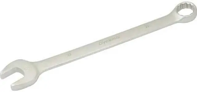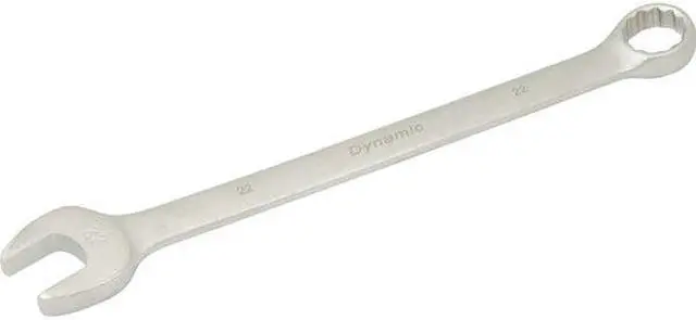 Drive Type: 12 Point. Size hard stamped at the open end for quick size identification. Satin chrome finish. 15° angled open and 15° offset boxed end. Meets ANSI standards.
