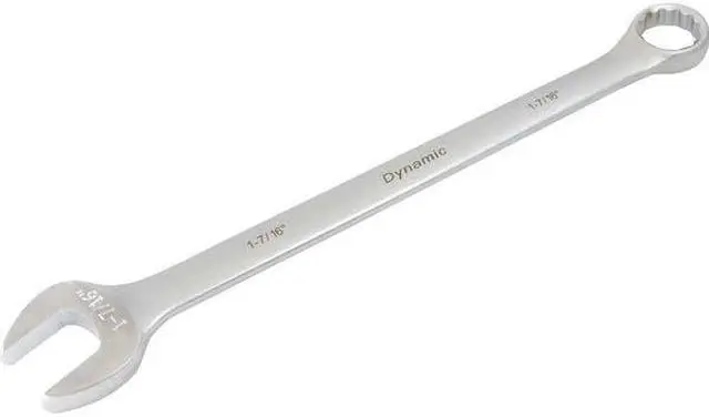 Drive Type: 12 Point. Size hard stamped at the open end for quick size identification. Satin chrome finish. 15 degree angled open and 15 degree offset boxed end. Meets ANSI standards.