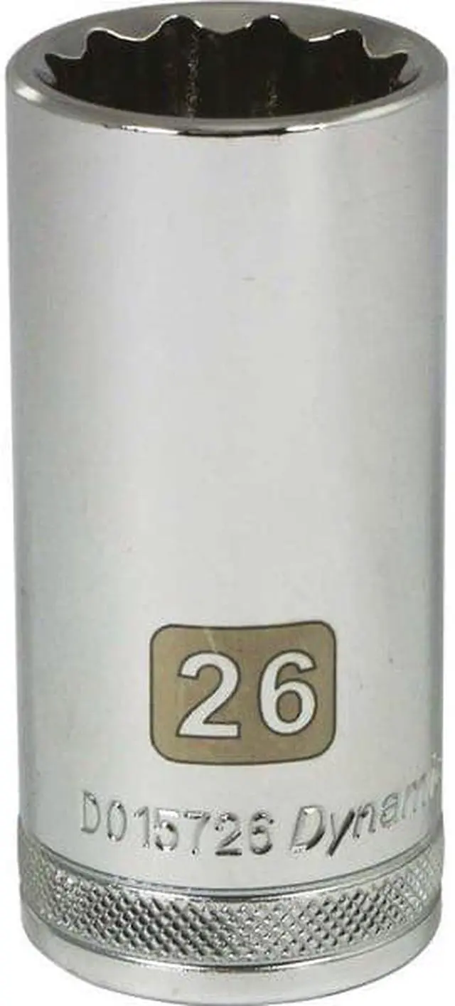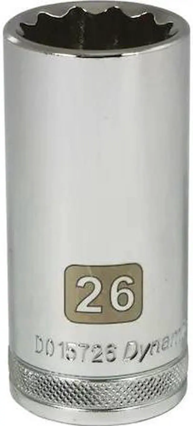 Drive Type: 12 Point. 1/2" Drive. Chrome finish for maximum resistance against corrosion. Large laser etched markings improve size identification and provide differentiation between SAE and metric sizes. Knurled ring provides superior grip for quicker and easier removal of socket from ratchets and attachments. Brand, part number and size also hard stamped. Meets ANSI standards.