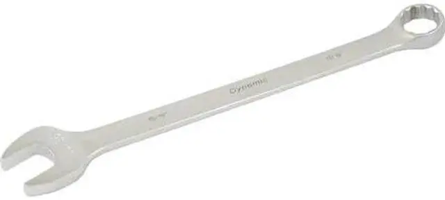 Drive Type: 12 Point. Size hard stamped at the open end for quick size identification. Satin chrome finish. 15 degree angled open and 15 degree offset boxed end. Meets ANSI standards.