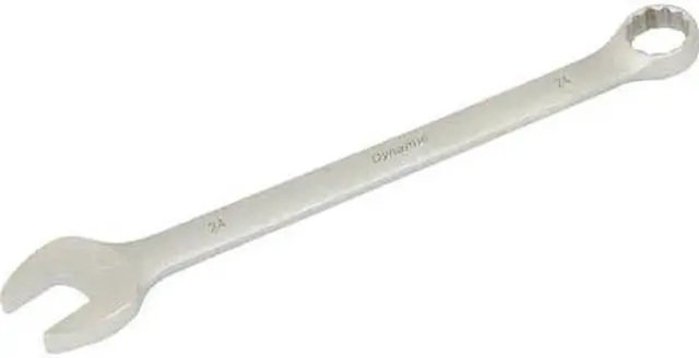 Drive Type: 12 Point. Size hard stamped at the open end for quick size identification. Satin chrome finish. 15° angled open and 15° offset boxed end. Meets ANSI standards.
