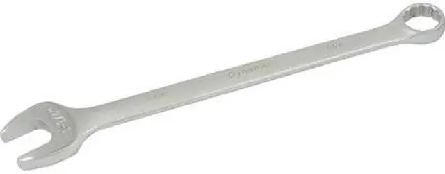 Drive Type: 12 Point. Size hard stamped at the open end for quick size identification. Satin chrome finish. 15 degree angled open and 15 degree offset boxed end. Meets ANSI standards.