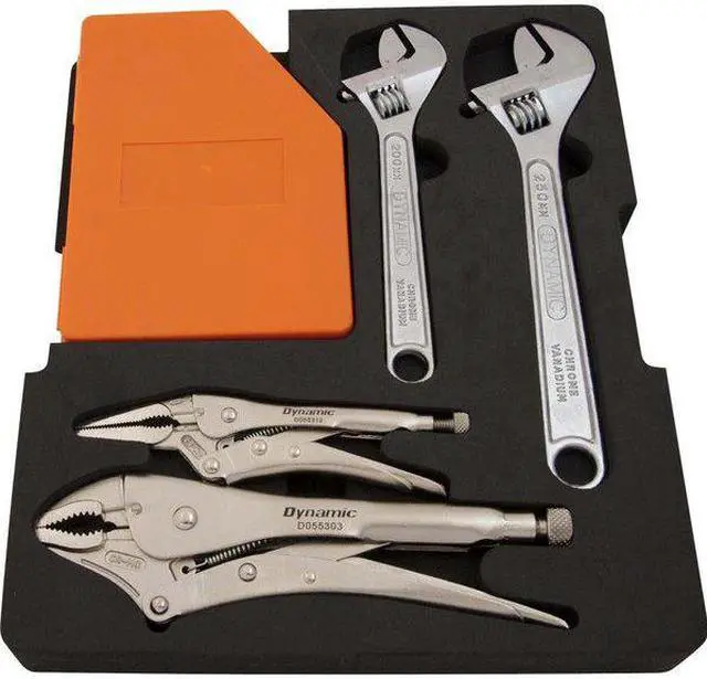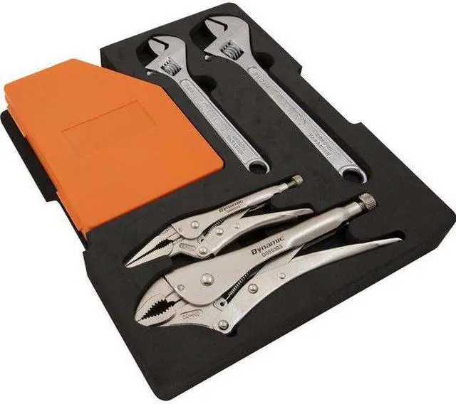Set Includes: 30 Piece hex key SAE and metric set, 8 and 10 adjustable wrenches, 10 locking plier-curved jaw, 6 locking plier-long nose, foam tray organizer. Foam insert, precisely created using CNC routers, provide a tight fit for each tool in the set, keeping them neatly organized. Each tool slot is marked making tool identification quick and easy. All foam inserts are made using 3D design and two layers of high-density foam in contrasting colours (black and orange). The orange color acts as a visual indicator so you can spot missing tools quickly. Tray measures 11.2 (L) x 1.5 (H) x 13.2 (W) and fits in most standard size toolbox drawers. Meets ANSI standards