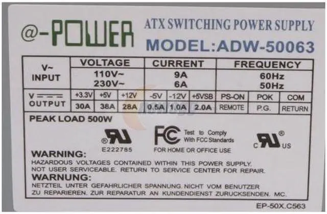 DYNAPOWER USA EP-50X.C563-BX 500 W ATX12V Power Supply