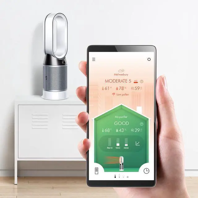 Dyson HP04 Pure Hot+Cool Link Connected Air Purifier, Heater & Fan | Nickel/Silver | RefurbishedThe Dyson Pure Hot + Cool is the only purifying heater + fan to clean a whole room properly. To simultaneously purify and heat a whole room properly, the Dyson Pure Hot+Cool purifying heater + fan goes beyond standard tests by automatically sensing pollution, capturing ultrafine pollutants, and projecting purified and heater air using Air Multiplier technology. It is the only purifying heater + fan designed and tested to do this.