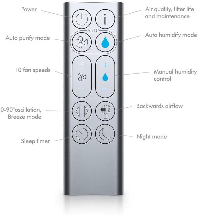 Backward airflow mode: Diverts airflow through the back of the machine to purify and humidify without cooling you.