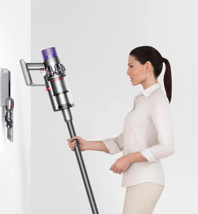 Drop-in docking: The Dyson Cyclone V10 vacuum drops into the wall-mounted dock, to recharge it and tidily store tools. So its ready to grab and go. Up to 60 minutes of fade-free power: Powerful suction to clean anywhere. Up to 35 minutes with motorized cleanerhead.