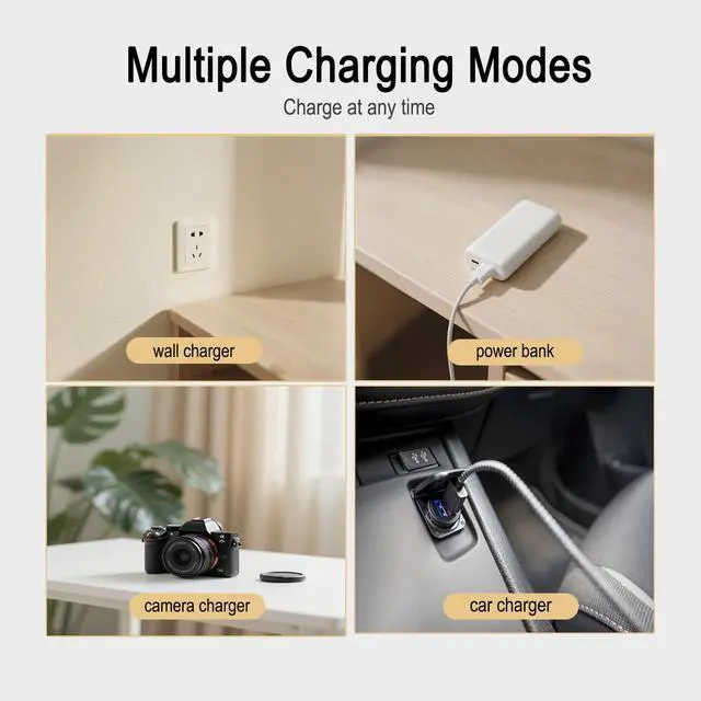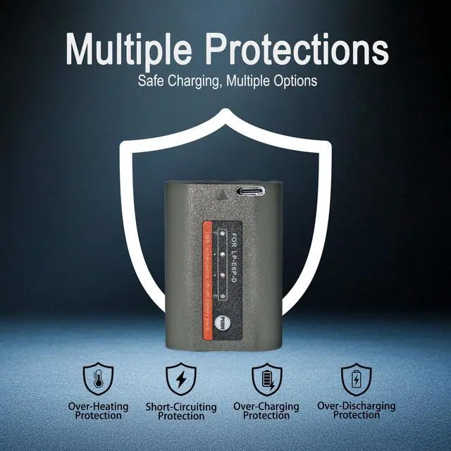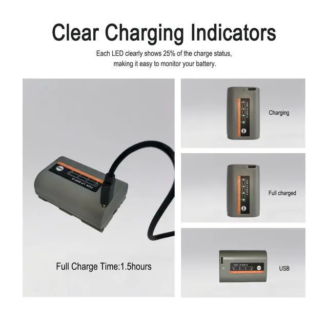 Clear Display: The LP-E6 battery features four indicator lights, each representing 25% of capacity, allowing you to clearly see the battery capacity. It comes with a Type-C charger and can be charged with a variety of devices, such as wall chargers, car adapters, and laptops.