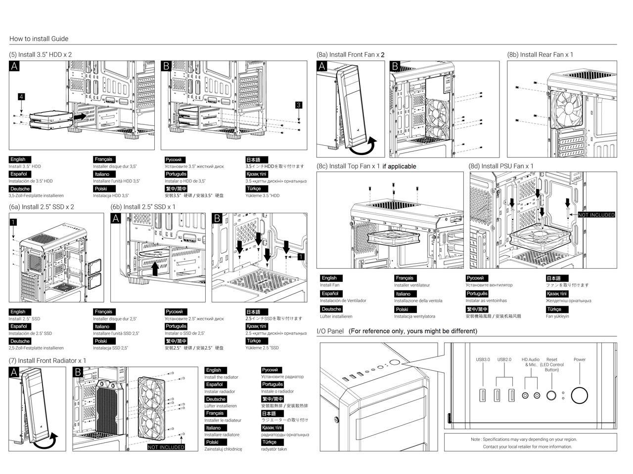 - Optional Fan: Front 120mm x 2, Side 120mm x 1, Bottom 120mm x 1