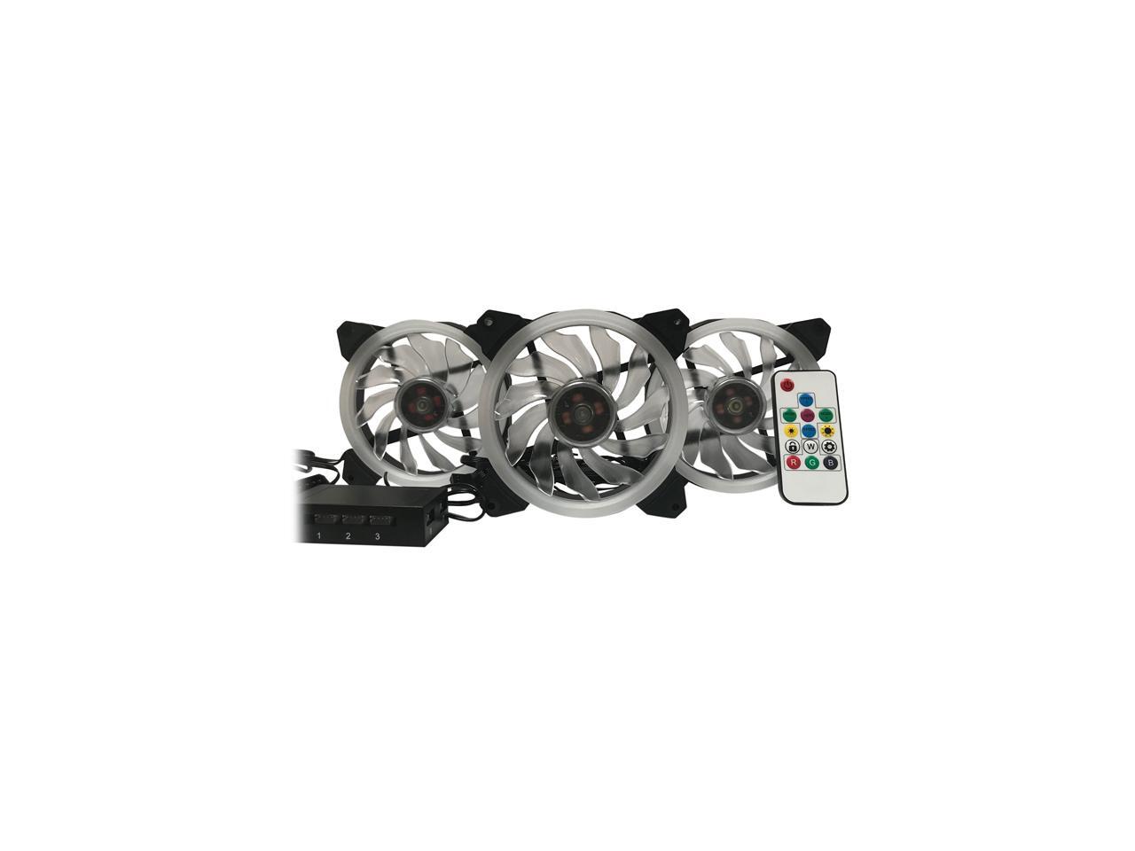 EPOWER 120mm Quiet RGB LED PWM Fan (3-Pack) with 8 Port Fan Hub and RF Remote