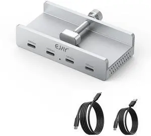EJAY 10Gbps USB C Hub 4Ports Aluminum USB 3.2 Docking Hub Clamp Design for Desk/Computor with Extra Power Supply Port and 47inches Long Data Cable&39inches Power Cable (BJ-4C-SV)